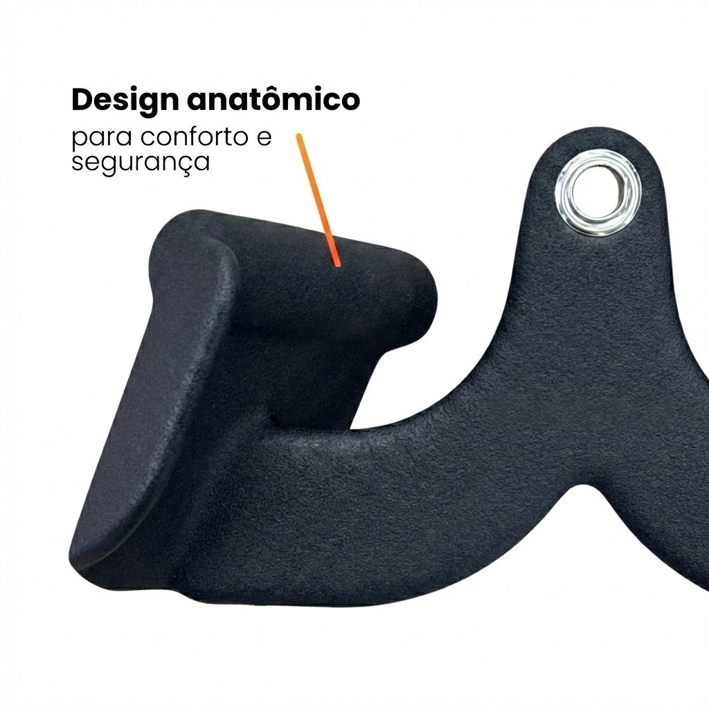 Compatibilidade: Sistema de fixação universal compatível com todos os mosquetões e máquinas de polia do mercado (Crossover, Puxada Alta, Remada Baixa).