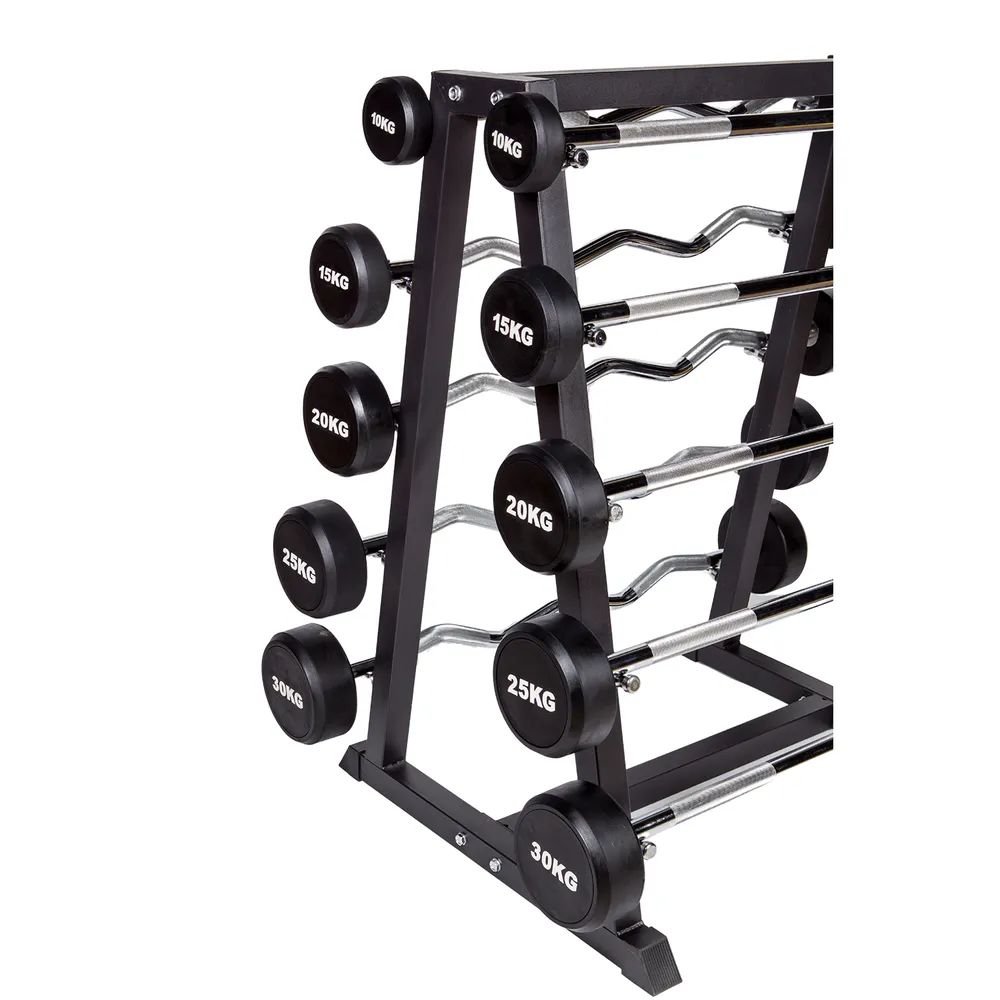 Este conjunto completo oferece 10 Barras Montadas (Fixed Barbells) com pesos fixos de 10kg a 30kg, divididas entre formatos Reto e W (Curl). Ideal para dropsets e treinos rápidos, o kit elimina a necessidade de troca de anilhas. Acompanha Rack Expositor em aço com pintura eletrostática e apoios em Cromo Duro, garantindo organização compacta e proteção contra desgaste.