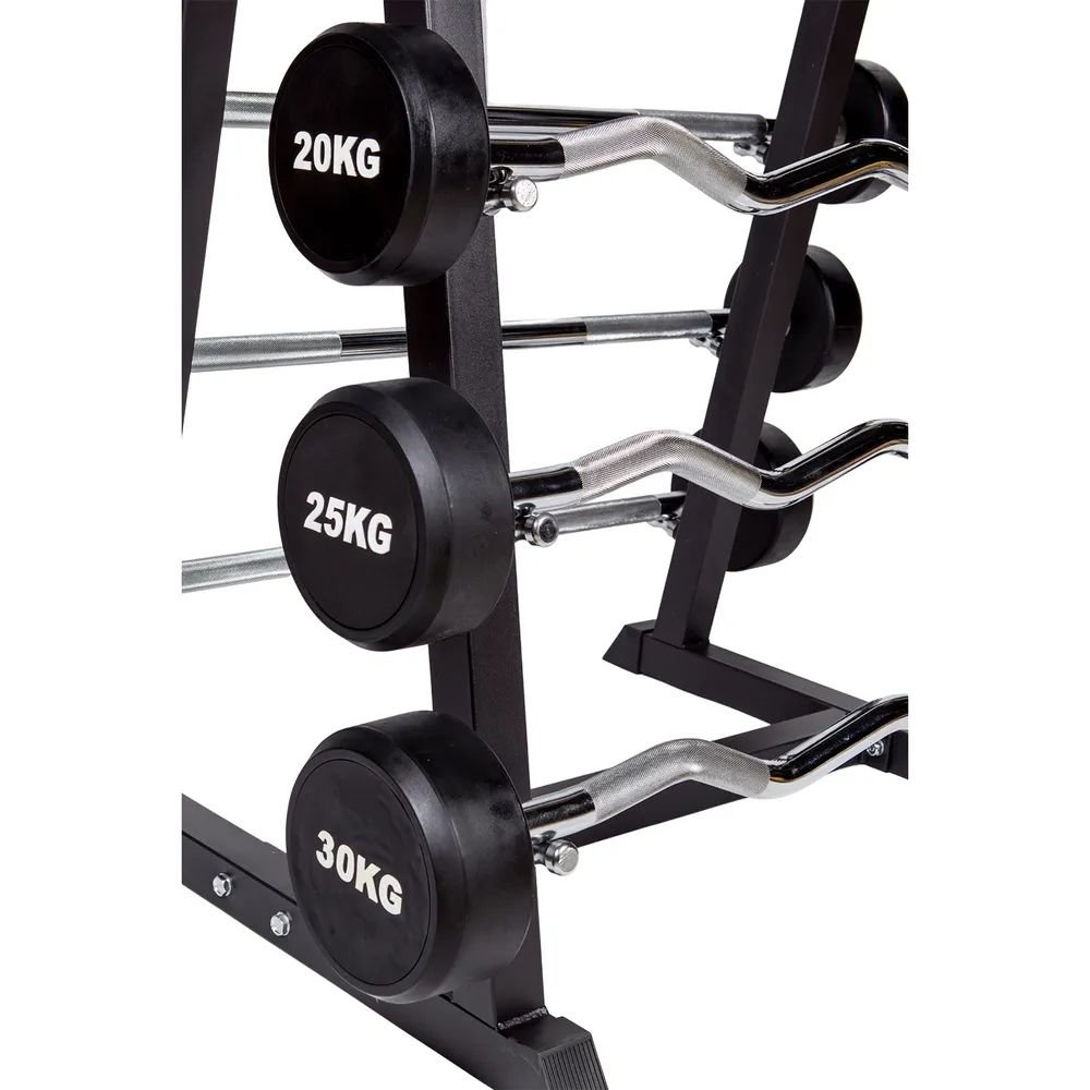 O Kit de Barras Montadas com Rack Expositor foi configurado para academias comerciais e centros de treinamento que buscam eficiência e profissionalismo. Este sistema “Ready-to-Use” (Pronto para uso) permite que o aluno selecione a carga imediatamente, dinamizando a rotatividade no setor de braços e ombros da sua academia.